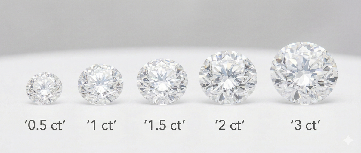 Carat refers to the weight of a diamond rather than its size. Historically, diamonds were weighed using carob seeds, valued for their consistent and uniform weight. The term “carat” is derived from the word carob, which remains the standard unit of measurement for diamond weight today.